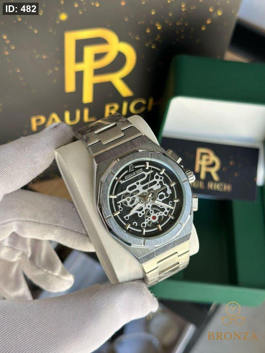 كوالتي عالي وزن ثقيل 120 غم حزام ستالنس ستيل صب فل تختيم كفالة سنتين على اللون والماكينة الداخلية المحتويات -علبة -كيس وكرت بول ريتش PAUL RICH