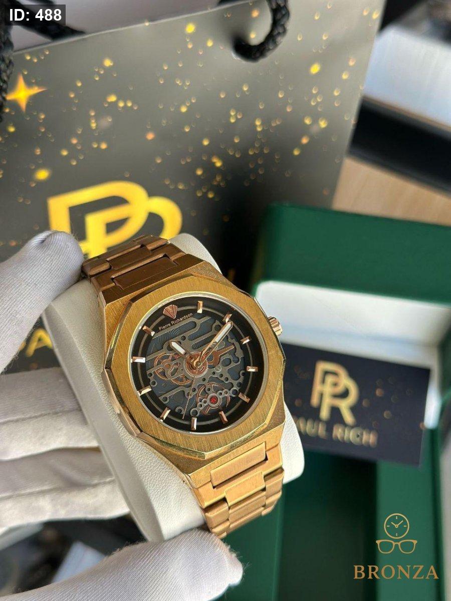كوالتي عالي وزن ثقيل 120 غم حزام ستالنس ستيل صب فل تختيم كفالة سنتين على اللون والماكينة الداخلية المحتويات -علبة -كيس وكرت بول ريتش PAUL RICH