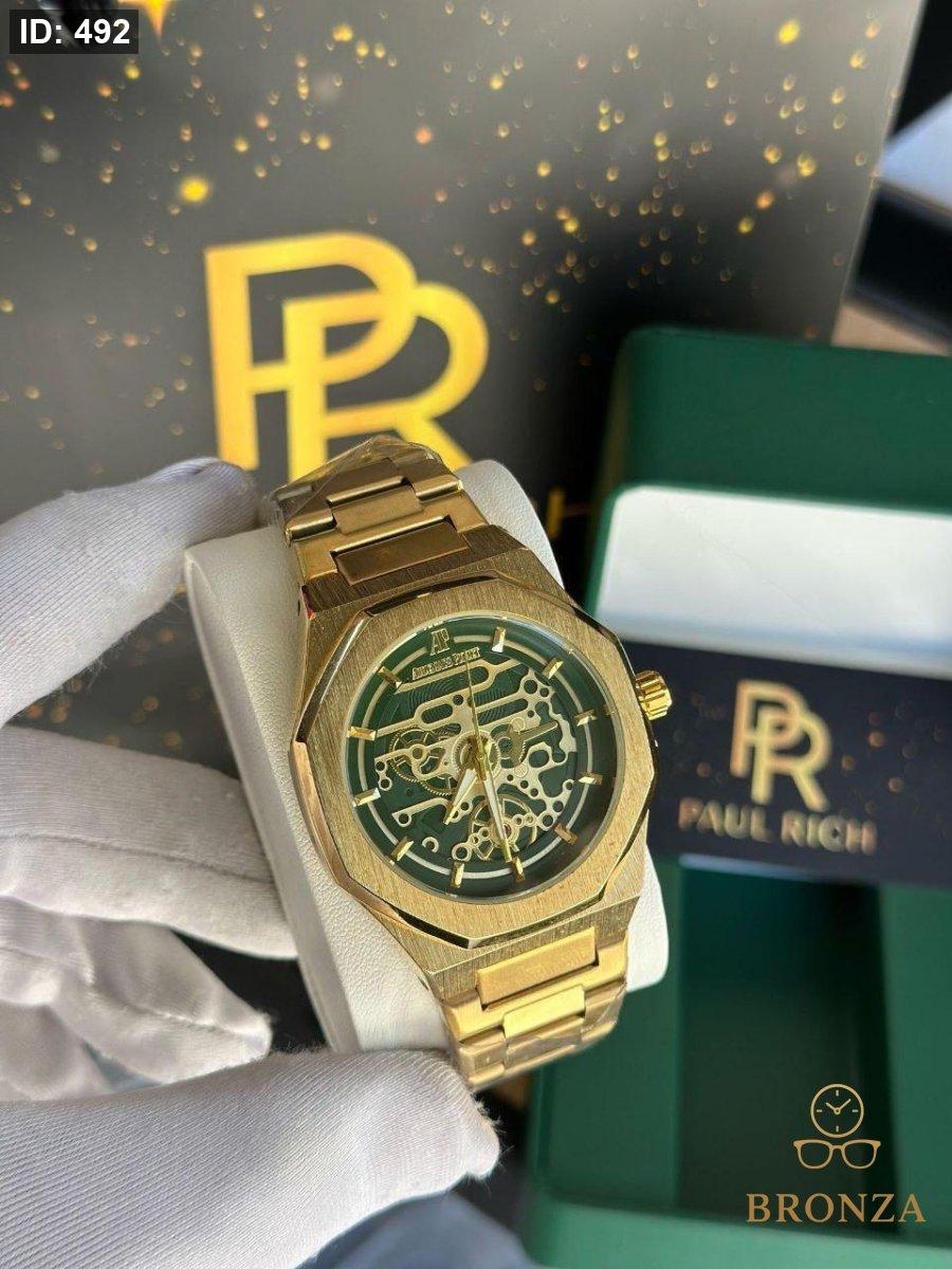 كوالتي عالي وزن ثقيل 120 غم حزام ستالنس ستيل صب فل تختيم كفالة سنتين على اللون والماكينة الداخلية المحتويات -علبة -كيس وكرت بول ريتش PAUL RICH