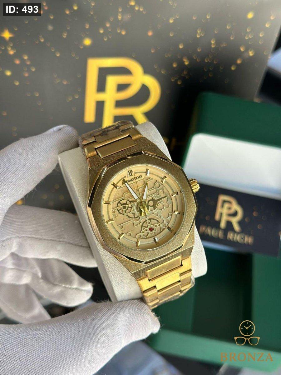 كوالتي عالي وزن ثقيل 120 غم حزام ستالنس ستيل صب فل تختيم كفالة سنتين على اللون والماكينة الداخلية المحتويات -علبة -كيس وكرت بول ريتش PAUL RICH